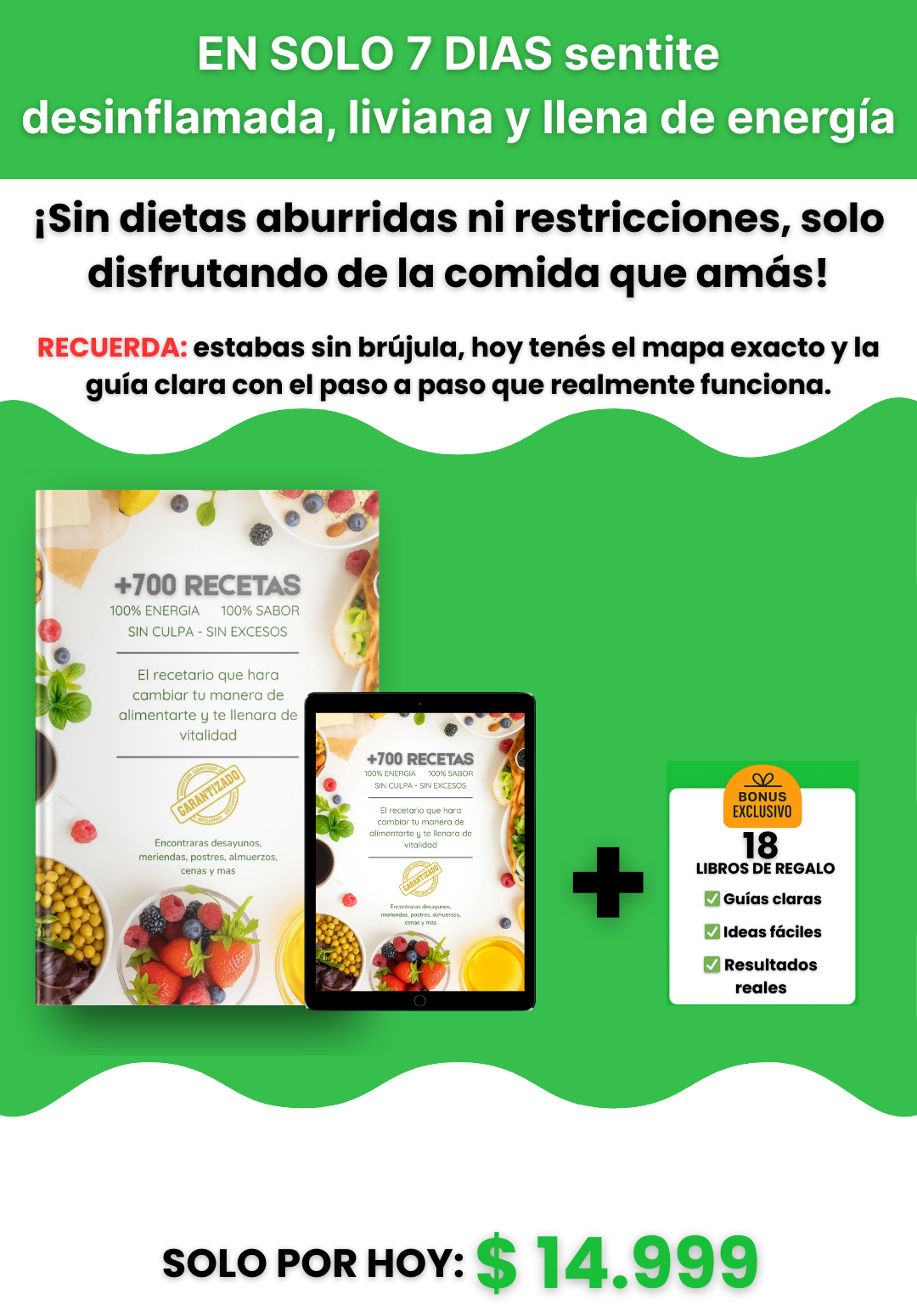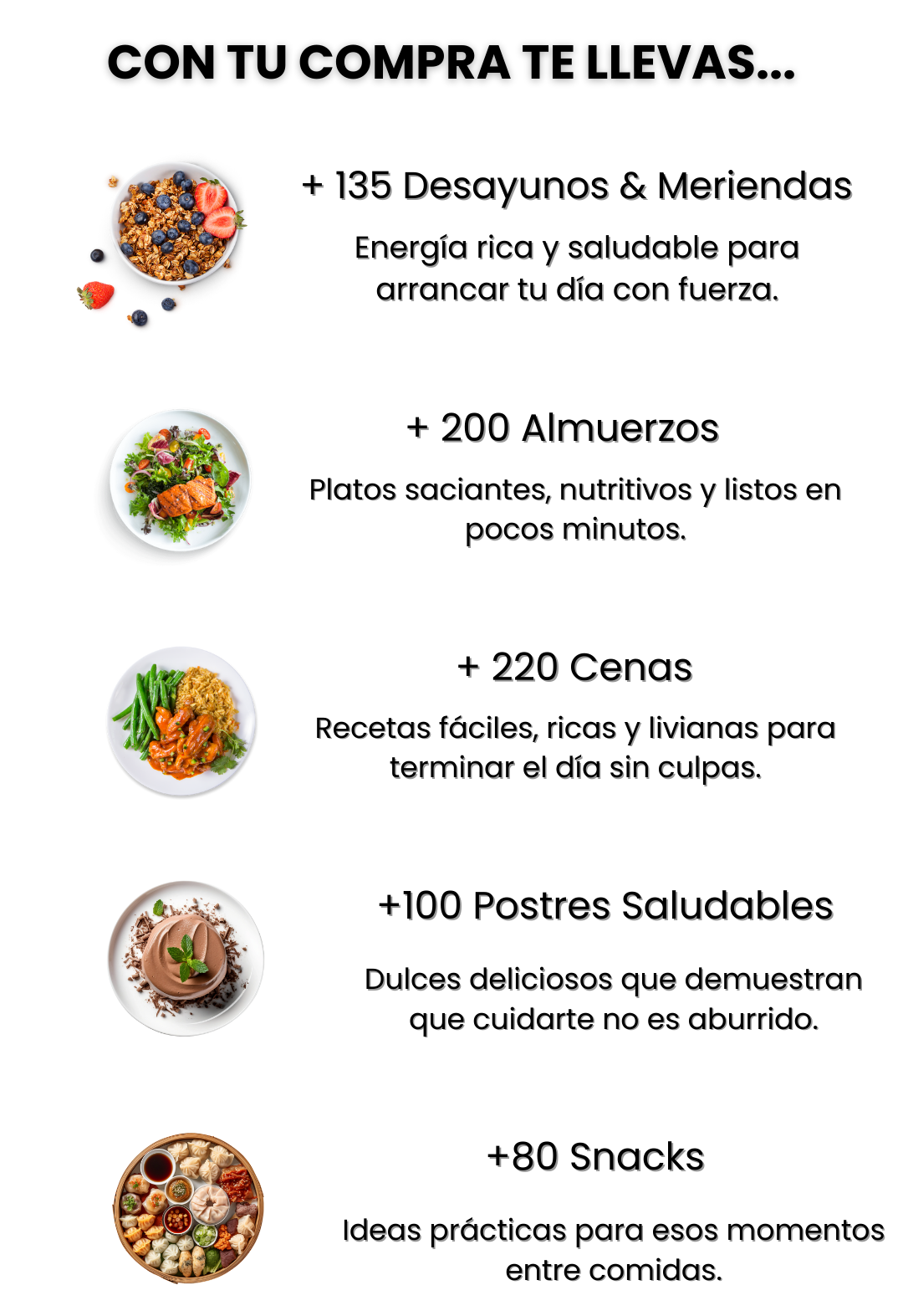 Además de ser muy completo (+700 recetas), incluye 18 bonus temáticos que amplían la variedad. Así, tenés un recetario para cada ocasión en un solo producto.